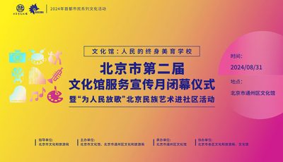 文化馆:人民的终身美育学校 北京市第二届文化馆服务宣传月活动闭幕仪式暨“为人民放歌”北京民族艺术进社区活动,2024年8月31日14:00-15:30,人民视讯联合多家媒体同步直播!